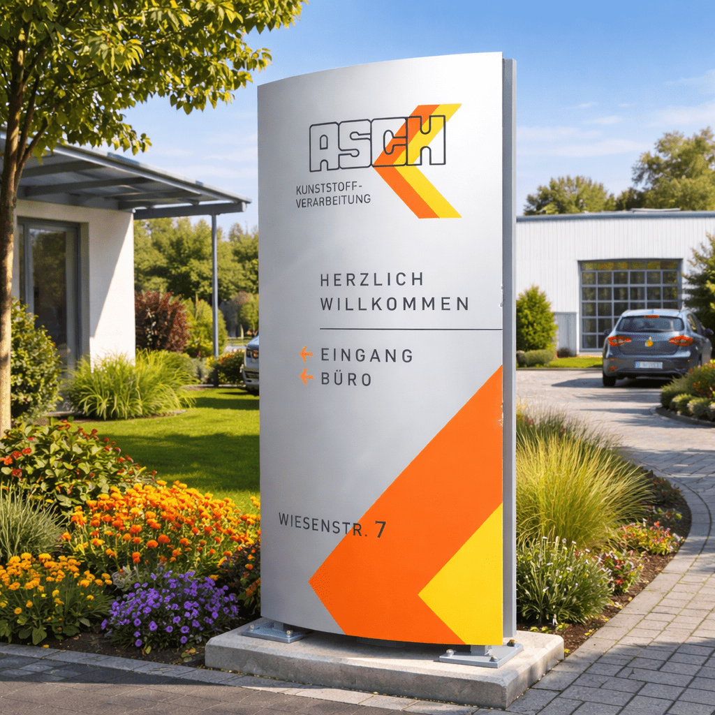 Der Werbepylon Vario Plus 2000 überzeugt durch seine schlichte Eleganz und ist die ideale Wahl für eine professionelle Außenwerbung ohne Beleuchtung. Mit seinem modernen, gewölbten Design setzt er Ihre Botschaft stilvoll in Szene und fügt sich harmonisch in jede Umgebung ein.
